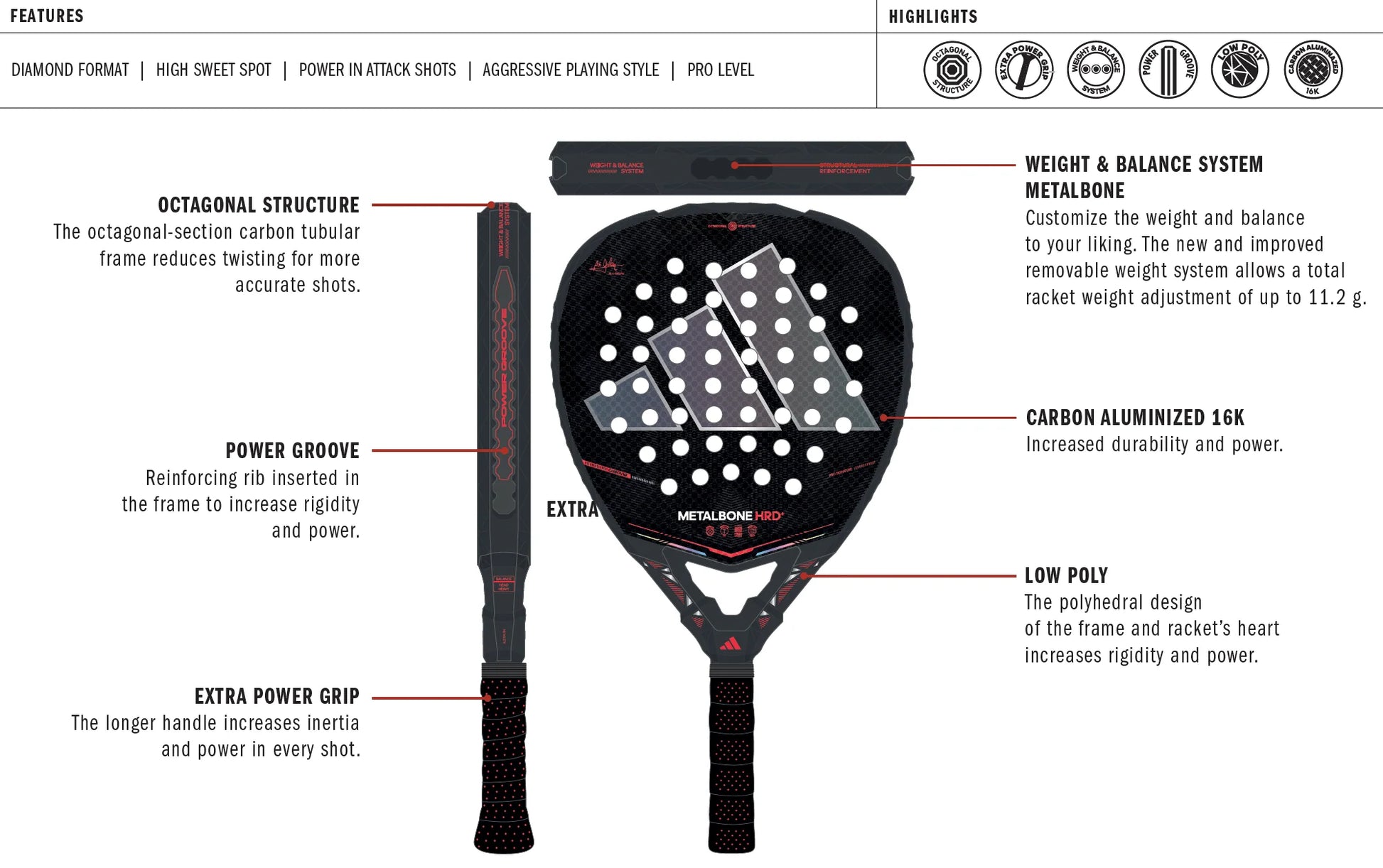 ADIDAS PADEL RACKET METALBONE HRD+ 2026